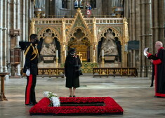 Karaliene Elizabete II pirmo reizi iziet sabiedrībā ar sejas masku