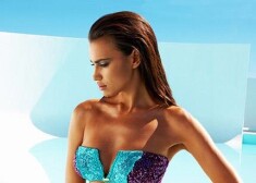 Irina Šaika demonstrē jaunāko peldkostīmu modi