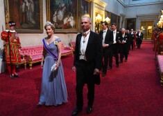 Viesi pulcējas Bakingemas pils saviesīgajam banketam