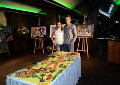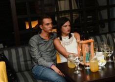 Marija Migliniece ar draugu Jāni Čaunānu 2015. gada vasarā restorāna ballītē Jūrmalā.