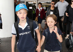 Varētu padomāt, ka meitas pilnībā saskaņojušas ģērbšanās stilu ar mammu Andželinu, izvēloties melnas drēbes un pat melnas sejas aizsargmaskas. Tomēr paparaci uzmanību nepiesaistīja Zaharas gaiši zilie džinsi, kas jauca šo “melno harmoniju”, bet gan rozā kedas, kādas pastaigai pa veikaliem bija izvēlējusies Šilo. Garos matus meitene aizvien nenēsā vaļējus, bet gan sasietus mezglā pakausī.