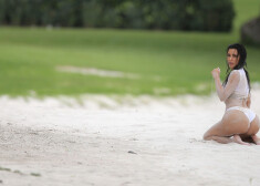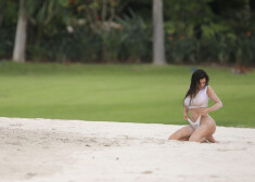 Kima Kardašjana atpūšas Meksikas pludmalē