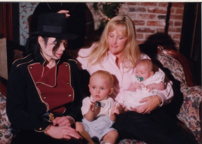 Maikls Džeksons ar tolaik vēl sievu Debiju Rovu un kopīgajiem bērniem Prinsu Maiklu un Parisu.