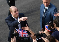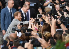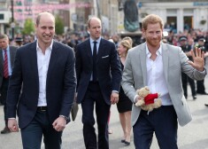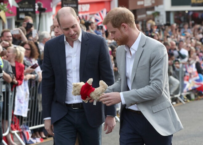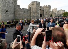 Princis Harijs ar vedēju princi Viljamu pie Vindzoras pils tiekas ar cilvēkiem
