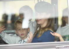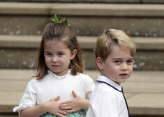 Prinča Viljama un hercogienes Ketrīnas bērni princis Džordžs un princese Šarlote apmeklē princeses Eiženijas kāzas