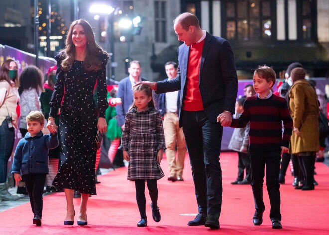 Hercogiene Ketrīna un princis Viljams ar bērniem apmeklē Ziemassvētku šovu Londonā