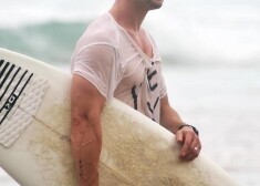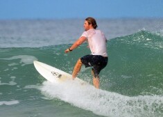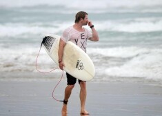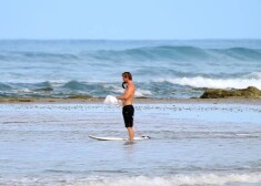 Kriss Hemsvorts sērfo Kostarikā