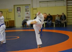 Saeimas deputāts Valdis Kalnozols taekvondo eksāmenā