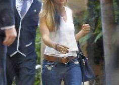 Kristīne ieradās pie Bena Afleka mājas ne tukšām rokām. Satiekoties viņa pasniedza aktierim pudeli šampanieša dāvanu iepakojumā. Spriežot pēc reakcijas, Bens bija priecīgs par sarūpēto velti. Afleks un Ozunjana brīdi draudzīgi patērzēja turpat pie automašīnas un apmainījās jokiem.