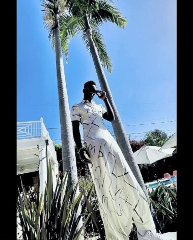 Video sižetu papildina vairākas glancēto žurnālu stila bildītes, kurās Deivids iepozējis tajā pašā tērpā zem palmām.