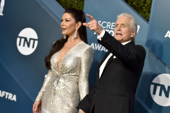 Ketrīna Zeta-Džounsa un Maikls Duglass attālināti rīkotajā “Zelta globusu 2021” ceremonijas vakarā