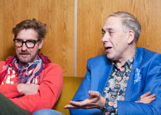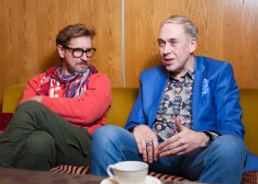 Mūziķis Normunds Jakušonoks sarunā ar modes mākslinieku Dāvidu.