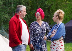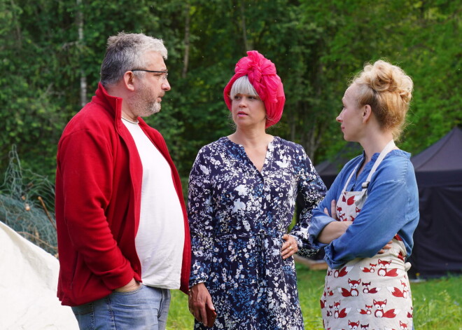 Baiba Indriksone tērpjas savas slavenās mazmeitas dāvinātā kleitā