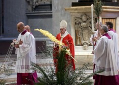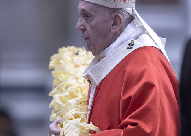 Klātesot vien pāris priesteriem, mūķenēm un baznīcas korim, Svētā Pētera bazilikā, Vatikānā, aizvadīta Pūpolsvētdienas mise.