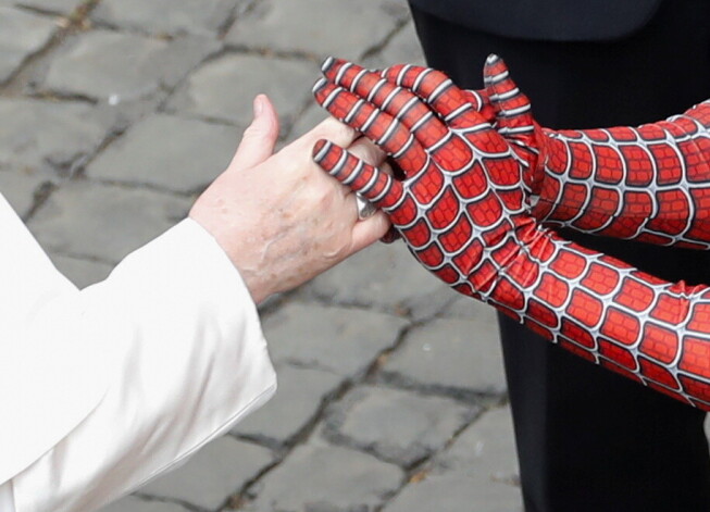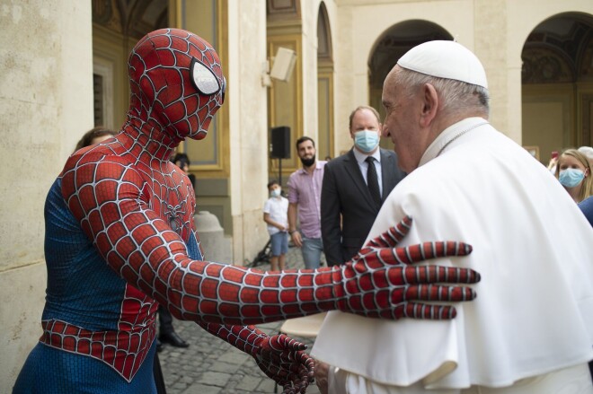 23.jūnijā Romas pāvests Francisks satikās ar neparastu personu - Zirnekļcilvēku. Šādu tērpu tikšanās laikā ar pāvestu bija uzvlicis 28 gadus vecs itālis vārdā Mateo.