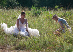 Bet kā tad, kad vairākas reizes jāskūpstās? “Pirmajā reizē bija riktīgs mulsums! Iedomājos, ka varbūt mums pirms filmēšanas vajag sarunāt mēģinājumu ar režisoru, lai tas mulsums neparādās kadrā. Skūpstīties sanāca ļoti daudz, jo katru ainu atkārtojām vairākkārt, lai varētu nofilmēt no dažādiem rakursiem, leņķiem, attālumiem. Bet es esmu iegājusi savā tēlā – visu filmēšanās laiku patiešām jūtos tā, it kā šīs būtu manas kāzas, un tā sajūta ir neaprakstāma. Kolīdz ierodos filmēšanas laukumā, esmu tēlā, te ir mans duālisms, manas šaubas, jo te ir arī mans bijušais draugs, ko atveido Mārtiņš Meiers. Jā, vēl tas... Tā ka vienkārši slīdu pa savu līgavas līniju,” filmēšanas aizkulisēs, tikko pēc vairākkārtējas skūpstīšanās ainu filmēšanas, atklāj daiļā aktrise.