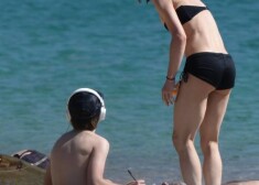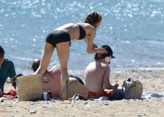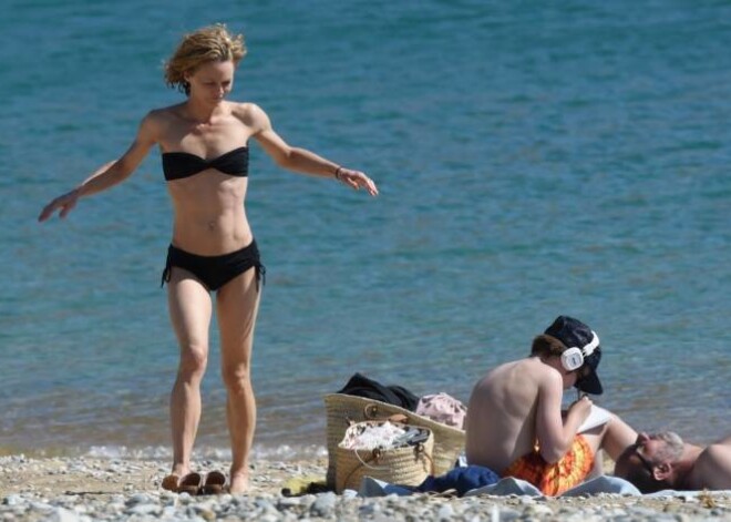 Miniatūrā francūziete, kura ir 1.57 m gara un sver vien nieka 42 kilogramus, atpūtai pludmalē izraudzījusies melnu peldkostīmu, kas ne tikai akcentē viņas slaido augumu, bet arī izceļ tā nepilnības – izteikti plakanu krūšu līniju. Peldkostīma krūšturis ik pa laikam šļuka lejup un Vanesai nācās to atkal koriģēt.