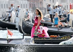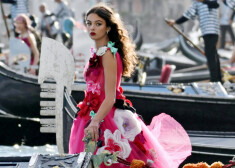 Deva ne tikai sēdēja skatītāju rindās kopā ar mammu. Viņa arī kāpa uz mēles “Dolce & Gabbana” skatē. Jauniete Venēcijā ieradās ar gondolu, bet modes skatē demonstrēja pasakaini skaistu un romantisku fuksiju krāsas kleitu, kas bija rotāta lieliem ziediem.