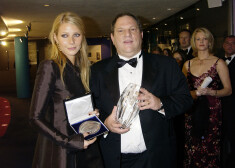 Gvineta Paltrova kopā ar producentu Hārviju Vainstīnu