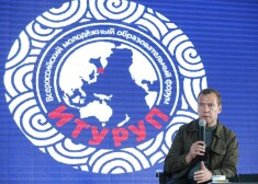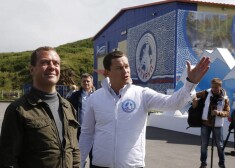 Krievijas premjerministrs Dmitrijs Medvedevs viesojas Kuriļu salās