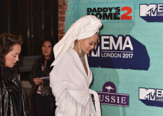 Rita Ora uz balvu ceremoniju ierodas frotē halātā