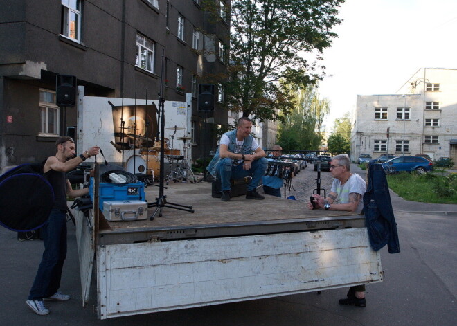 Žaklīnas Cinovskas vārdadienas ballīte ar "Līvu" koncertu pagalmā.