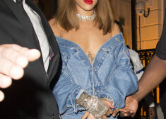 Šādi tērpusies dziedātāja Rianna devās uz tusiņu Londonas naktsklubā „Tape”, kur viņa ballējās kopā ar Džastinu Bīberu.