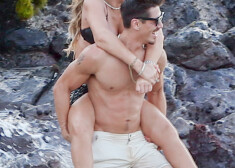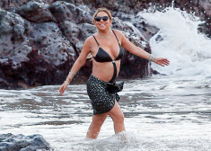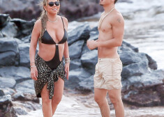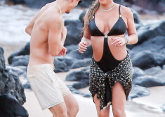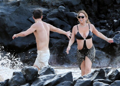 Meraija Kerija Havaju salu pludmalē ar jauno draugu Braienu Tanaku. Viņš ir popzvaigznes pavadošās grupas dejotājs.