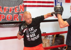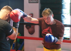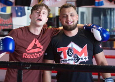 Dailes teātra aktieri vicina dūres boksa treniņā