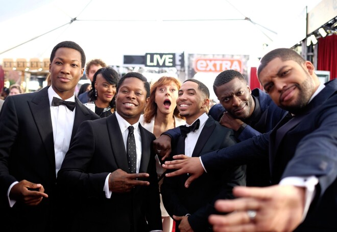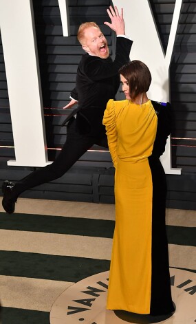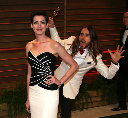 Ja ar efektīgo uzvalku nepietiek, aktieris Džēreds Leto par savu klātbūtni atgādina, arī sabojājot citu fotogrāfijas. Kā aktiera Maikla Kītona un kino mūzikas komponista Aleksandra Despla duetu, tā aktrises Annas Hetavejas lielisko bildi.