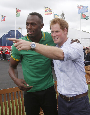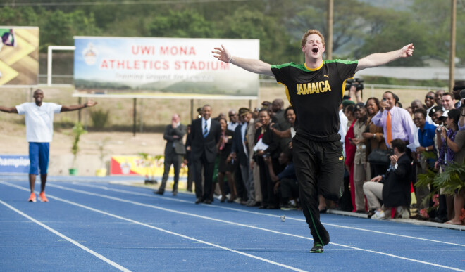 Princis Harijs devās uz Jamaiku 2012. gada martā, lai satiktos ar sprinteri Useina Bolta trasē Rietumindijas Universitātē. Viņš šajā vizītē devās pārstāvot karalieni Elizabeti II viņas valdīšanas dimanta tūres ietvaros.