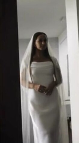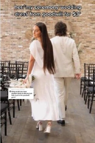 Citā video viņa pastāsta, ka bijusi arī otra kleita: īsāka, ar volāniem, ko viņa izvēlējusies pieņemšanas daļai. Un arī tā maksājusi niecīgu summu. Par svinīgu neoficiālās daļas tērpu līgava samaksājusi nepilnus piecus ASV dolārus.