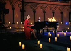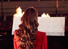 Hercogiene Ketrīna spēlē klavieres labdarības koncertā