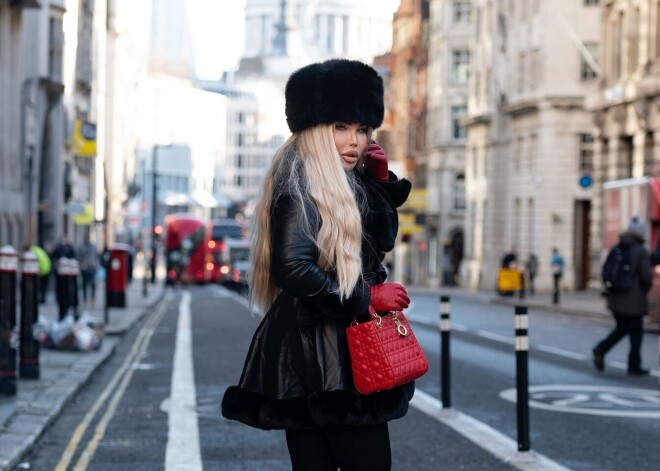 “Dzīvā Bārbija” Džesika Alvesa dodas uz Covid-19 testēšanas centru Londonā 2021. gada janvārī