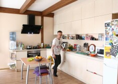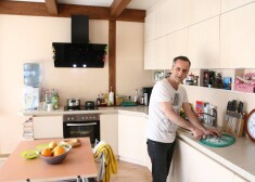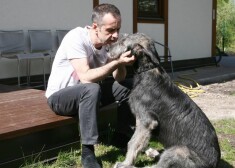 Grupas „Jumprava” mūziķis Aigars Grāvers ar vienu no dēliem – pastarīti Albertu - un īru vilku suni Alfonu saimnieko savas ...