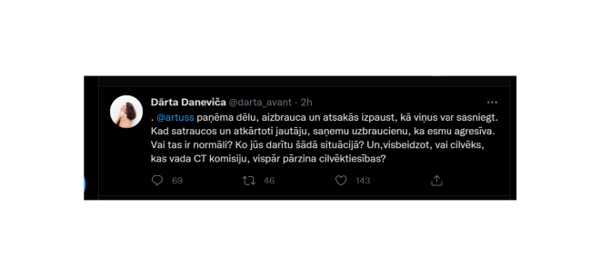 Dārta, publiskojot daļu no abu vienošanās, apvainoja Artusu melos, paziņoja, ka atrodas pie viņa mājas, un situācija vismaz uz kādu laiku tika atrisināta - ar policijas iesaistīšanos.