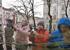 Ukraiņi palīdz savai armijai, aužot kamuflāžas tīklus