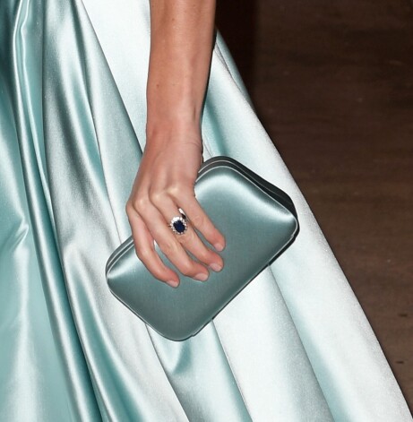 Taču firmas “Lulu Guinness” “clutch” somiņa par 225 sterliņu mārciņām (265 eiro) bija jauna un perfekti saskanēja ar hercogienes satīna kleitas toni. Somiņas cenu eksperti pieskaitījuši pie Ketrīnas vakara garderobes izmaksām. Koptēls, kas hercogienei Ketrīnai izmaksāja 6725 sterliņu mārciņas (7933 eiro) bija izvēlēts, lai dotos uz oficiālo pieņemšanu pie Bahamu salu ģenerālgubernatora.