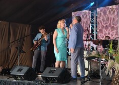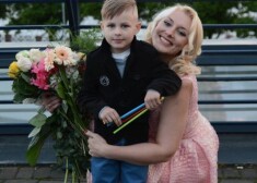 Pēc uzstāšanās Anmary baltu rožu pušķi dāvāja viņas dēls Marts.