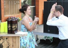 Santa Didžus sākusi apgūt bārmenes prasmes un jauc kokteiļus
