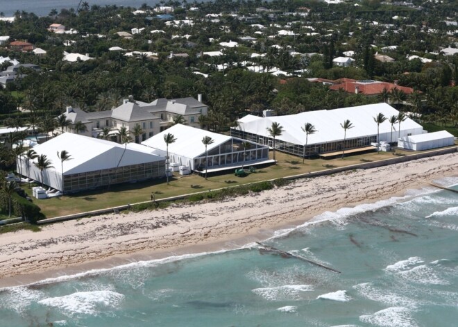 Gatavošanās darbi Bruklina Bekhema un Nikolas Pelcas kāzām līgavas tēva īpašumā Floridā