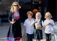 Holivudas zvaigzne Džūlija Robertsa ar bērniem Finu, Heizelu un Henriju.
