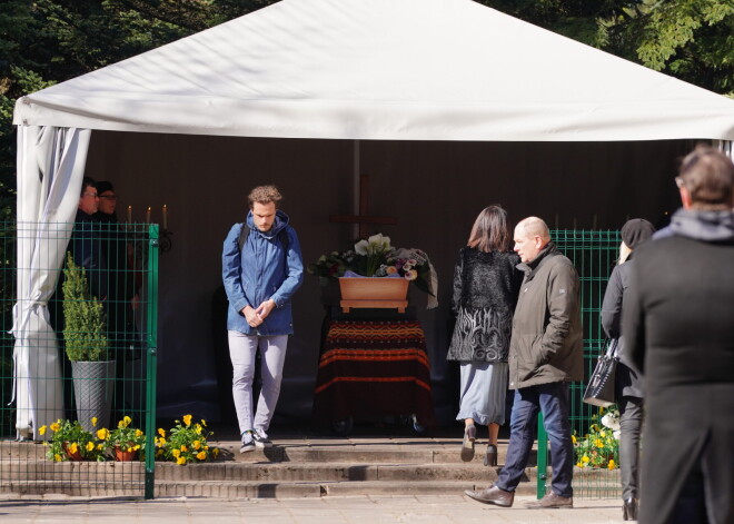 Bēru pasākums notika atvadu teltī, kas uzslieta blakus krematorijam. Īsu dievkalpojumu un atvadu vārdus teica bīskaps Andris Kravalis. Atvadīties bija ...