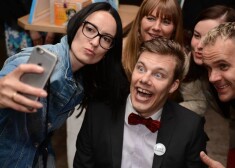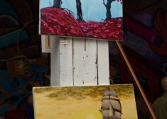 Andra Kiviča dziesmas „Tieši tagad un te” prezentācija, kurā notika Mareka Odumiņa gleznu personālizstāde 2015.gada 28.maijā.