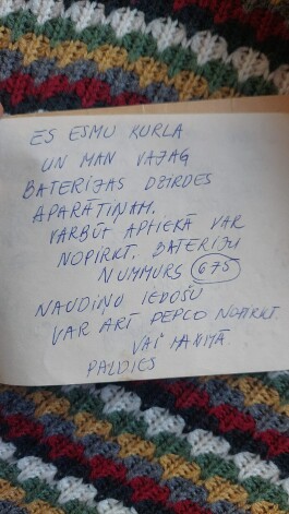 “Stāvēju ārā ar lapiņu ar uzrakstu, ka esmu kurla, lai kāds man nopērk veikalā baterijas dzirdes aparātam, ka naudu iedošu. Neticami, bet man pagāja garām vairāki cilvēki, tikai piektais, vīrietis gados, negribīgi, tomēr nolēma man palīdzēt un veikalā nopirka baterijas. Pie sevis domāju, mīļie cilvēki, kāda ir mūsu pasaule, kurā dzīvojam?”