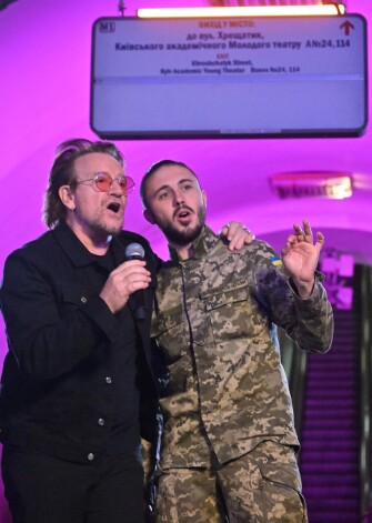 Apliecinot cieņu ukraiņu cīņai par brīvību, īru rokgrupas U2 līderis Bono svētdien Kijivā sniedzis koncertu metro stacijā.