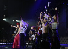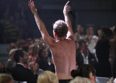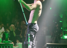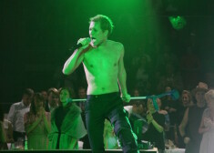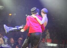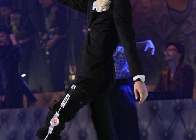 Ralfs Eilands ar ortozē nostiprinātu kāju uzstājās “Cabaret” izrādē TV3 18. jubilejas ballītē 2016. gada 19. augustā.