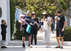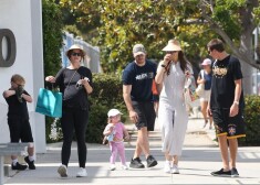 Kriss Prats ar sievu Ketrīnu Švarcenegeri, vecāko meitu Lailu un sievas māsu Kristīni 2022. gada 15. maijā
