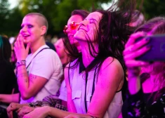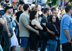 Ļaudis bauda grupas "Placebo" uzstāšanos Siguldas pilsdrupu estrādē