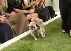 Skat, kā Valda Birkava suns Endžels piedalās savas dzīves pirmajā modes skatē